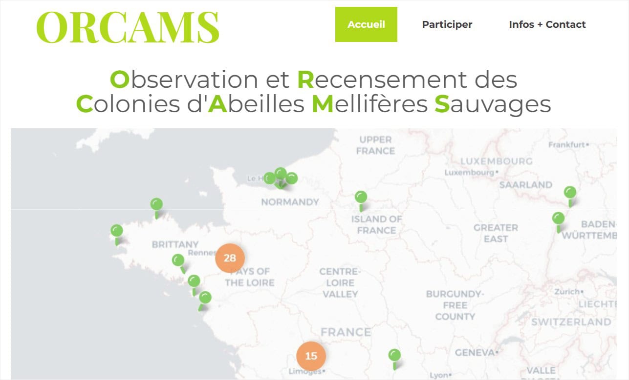 Afin de mieux comprendre la dynamique des populations sauvages, et évaluer l’efficacité de ces mesures de conservation, ORCAMS (Observation et Recensement des Colonies d’Abeilles Mellifères Sauvages) est un programme de science participative dédié au suivi des colonies d’abeilles. Celles-ci sont présentées sur une carte avec une fiche descriptive, par toute personne ayant connaissance d’abeilles nichant dans des cavités naturelles (tronc d’arbres creux) ou artificielles (nichoirs, vieux murs).